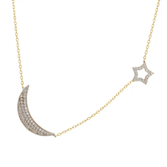 Altın Kolye Modelleri modellerinden Zincir Üzerinde Ay ve Yıldız Kolye ürünümüz,